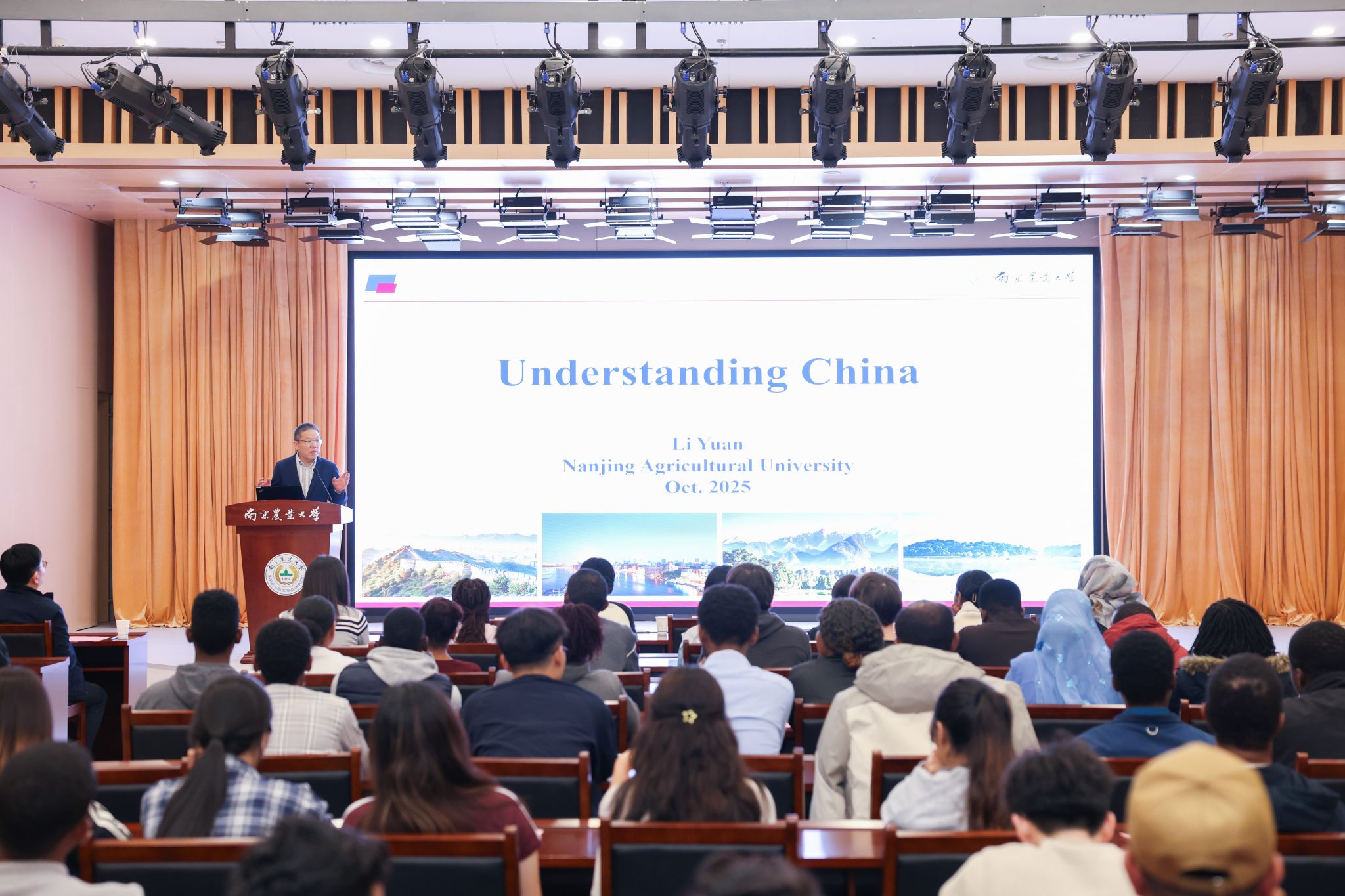 典礼后,食品科技学院副院长李远为新生们带来了题为《中国概况》的专题报告。他从历史、地理、文化、经济等多个维度,深入浅出地介绍了中国的基本国情和发展成就。通过生动的案例和详实的数据,帮助新生们构建起对中国全面而立体的认知框架。